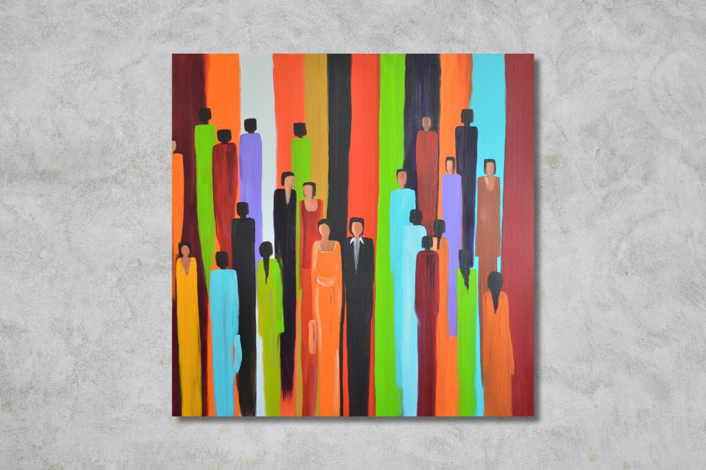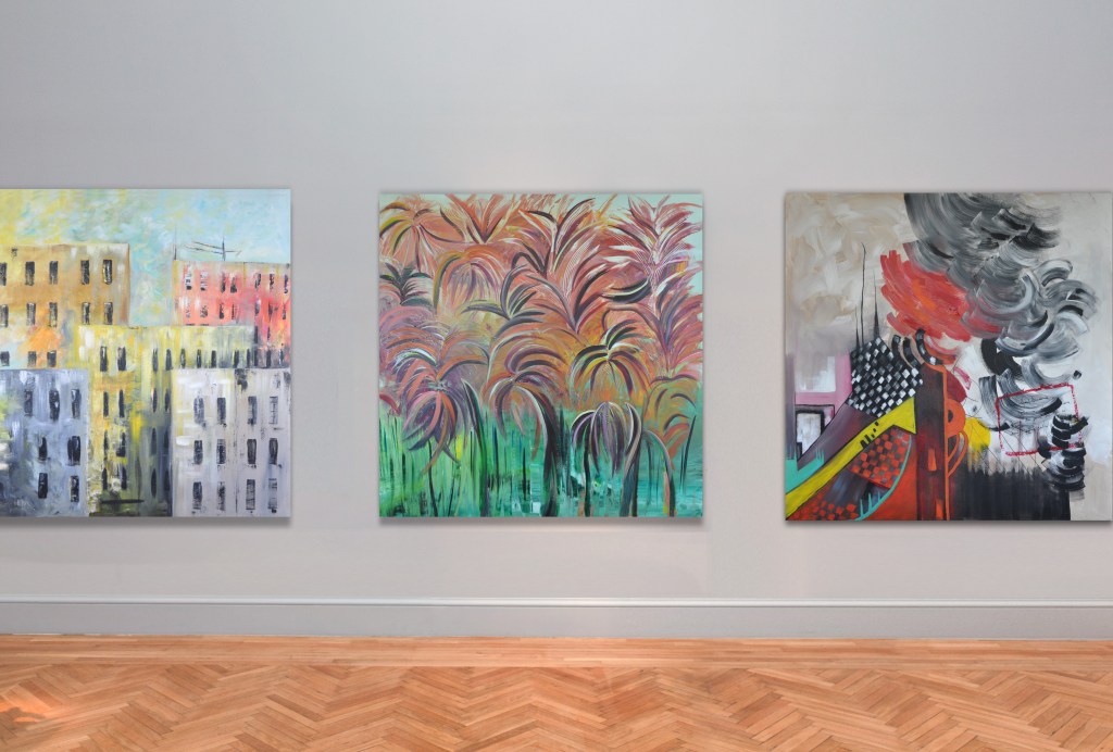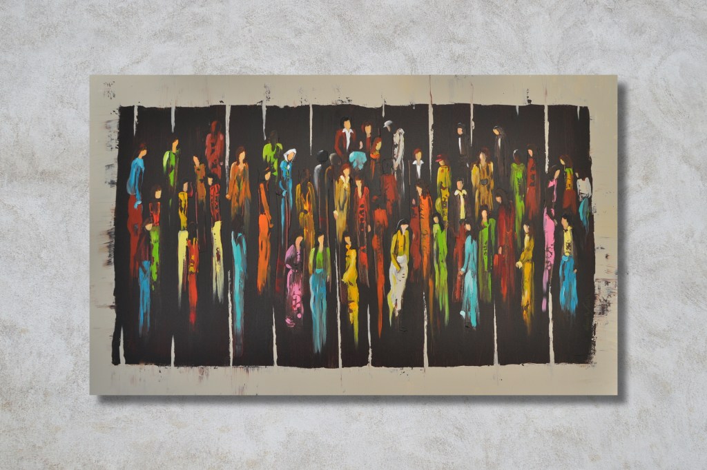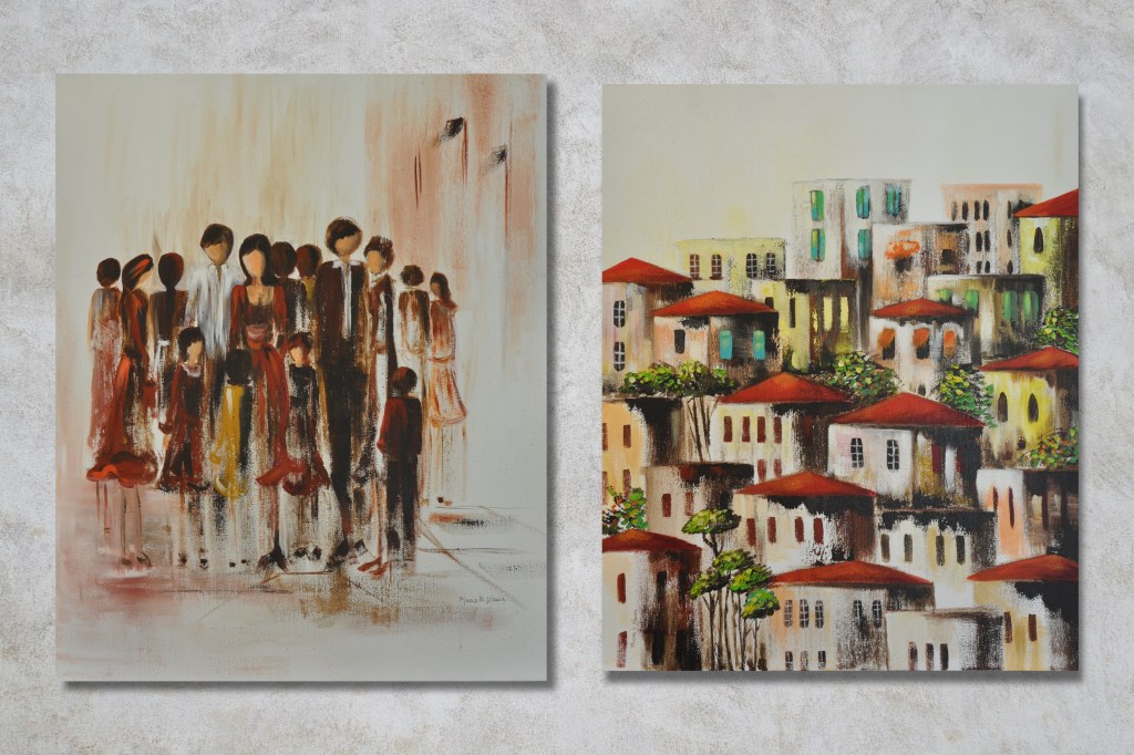 Dyptich – Acrylic on canvas – 90 x 90 cm (each).Four different works – 3aj2a (Crowd) Collection.“She’s Shy“- Acrylic on canvas – 110 x 90 cm.Left: “Family Outing” – Right: “Tiles” – Mixed media on canvas – 110 x 90 cm. 4 framed pieces – Mixed media on canvas – 25 x 55cm (each).3aj2a (Crowd) Collection – Acrylic on canvas – 130 x 80 cm – SOLD.FLOWERS – Acrylic on canvas – 100 x 100 cm and 90 x 90 cm.Acrylic on canvas – 110 x 110 cm – SOLD.Three different works – Acrylic on canvas – 150 x 150 cm.3aj2a (Crowd) Collection – Acrylic on canvas – 40 x 50 cm (each).WINDOWS – Acrylic on canvas – 150 x 150cm.2019 Collection – Left Side: SOLD.Four older works – SOLD.Two older works – SOLD.